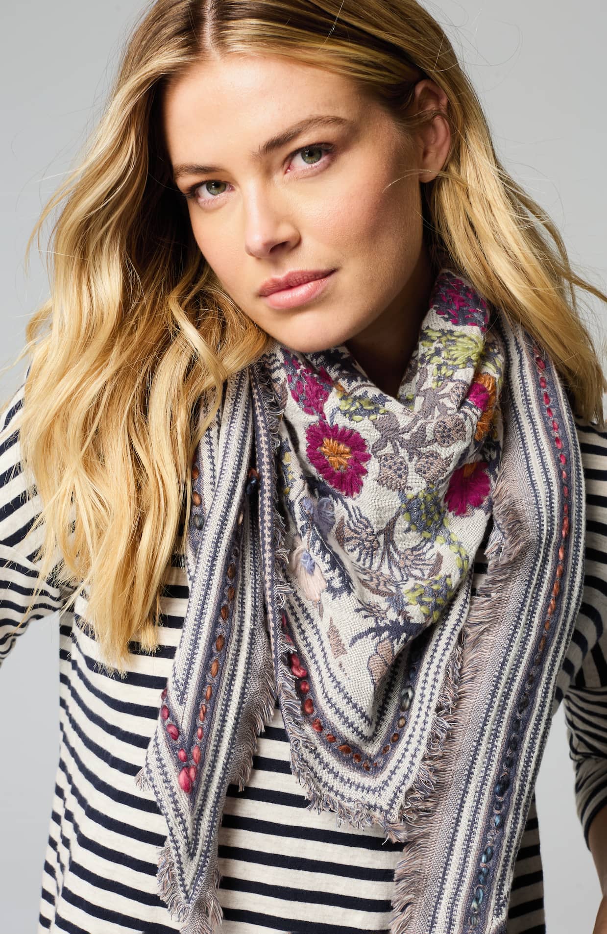 Winter Bloom Embroidered Triangle Scarf