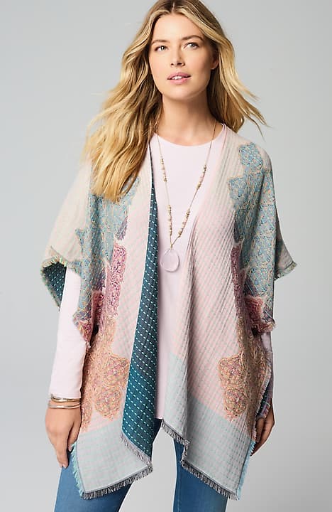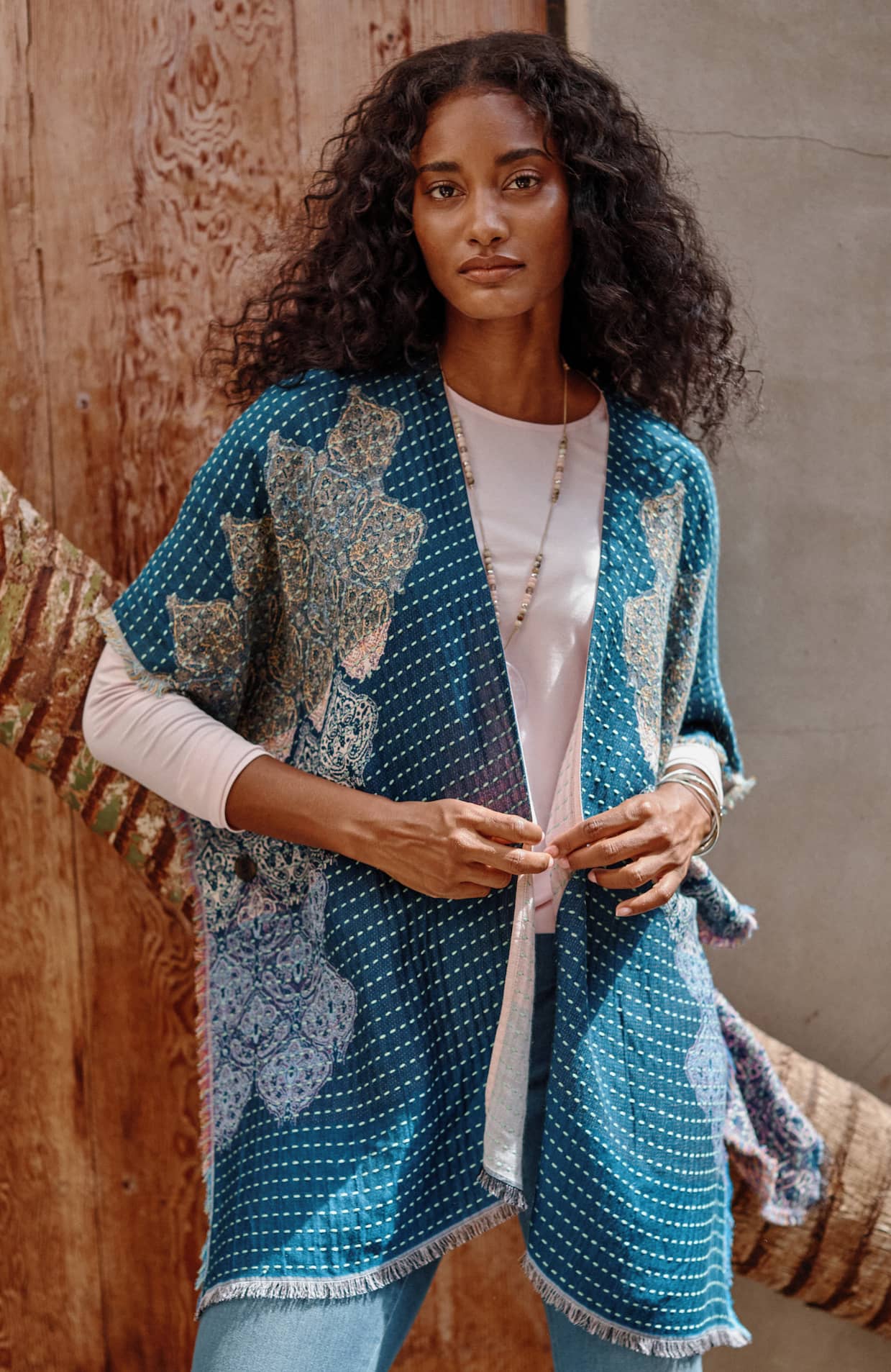 Kantha-Stitched Reversible Jacquard Ruana